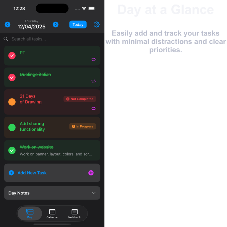 A clean, focused app that keeps your day simple, so your brain can focus on what matters.